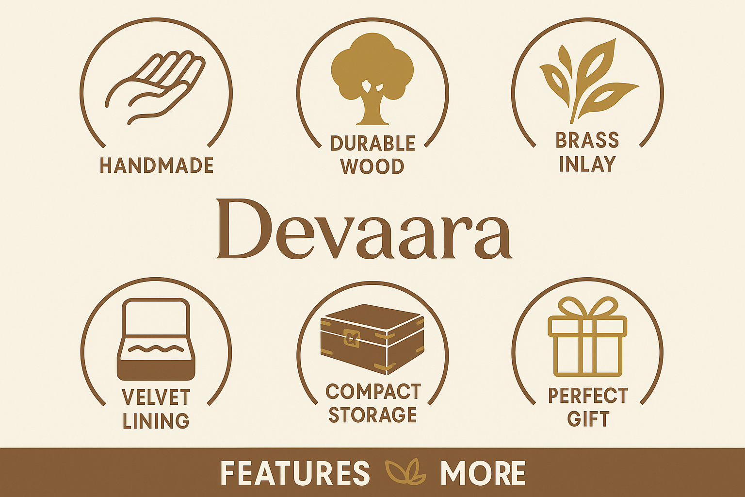 Organize your precious jewelry in style with this elegant handcrafted wooden jewelry box. Designed with intricate brass inlay on the lid and sturdy brass fittings, it combines durability with timeless beauty. The smooth wooden finish and compact size make it perfect for storing rings, earrings, and small keepsakes.